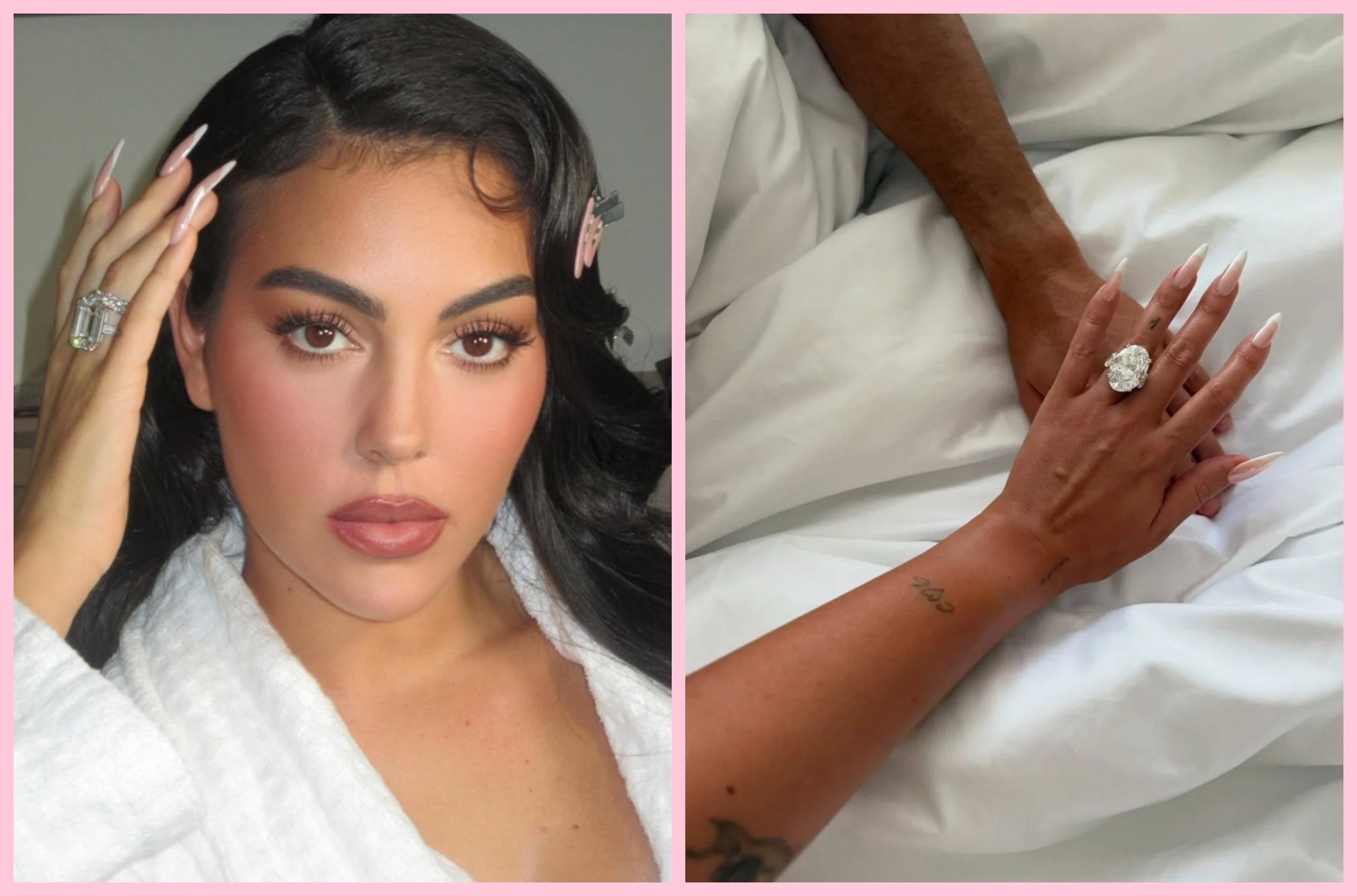 Джорджина Родрігес у 2025-му стала не тільки нареченою Кріштіану Роналду, а й отримала у подарунок неймовірно дорогу та вишукану каблучку. Кільце прикрасив камінь, який колись належав Елізабет Тейлор. Його вага — 69,42 карата. А ціна цієї прикраси дорівнює близько 10 мільйонів доларів.