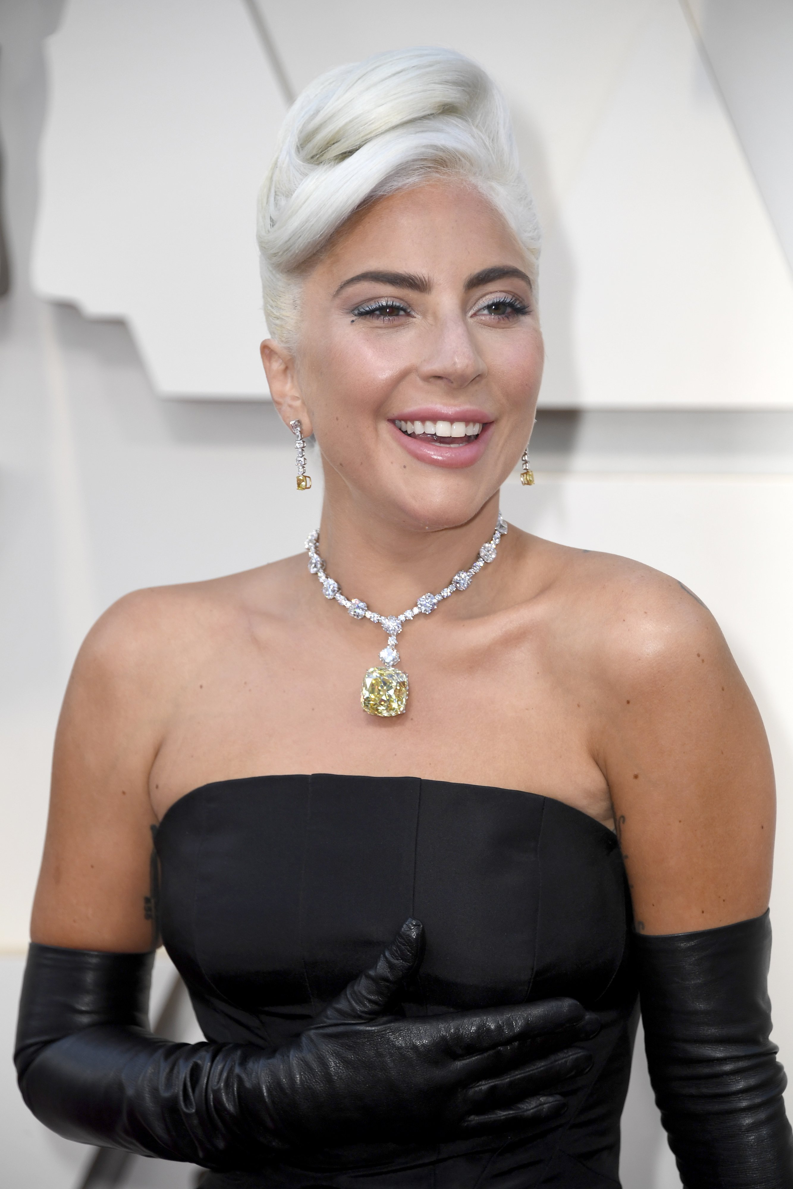 Під час вручення Оскара за фільм "Народження зірки" співачка з’явилася у культовому кольє від Tiffany & Co. з жовтим діамантом вагою понад 128 каратів. Цей камінь має багату історію — його знайшли ще у XIX столітті в Південній Африці. Вартість прикраси оцінюється у 30 мільйонів доларів. До речі, раніше її носила Одрі Хепберн.