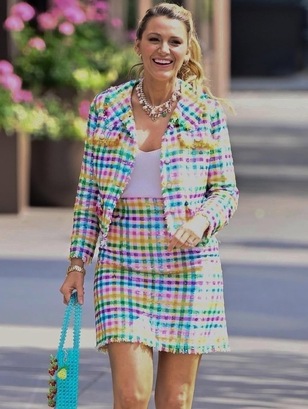 Блейк Лайвлі похизувалась вінтажним костюмом у кольорах веселки, який поєднала з трендовою сумочкою (ФОТО)