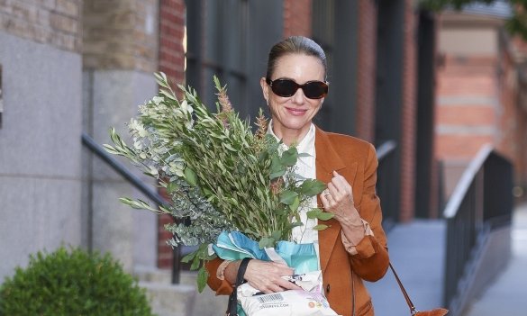 56-річна британська акторка Наомі Воттс наразі знімається у серіалі American Love Story (показ першого епізоду запланований на лютий наступного року). А між зйомками красуня продовжує займатися своїми справами. Так, днями її помітили з величезним букетом квітів та собакою на прізвисько Іззі під час прогулянки.
