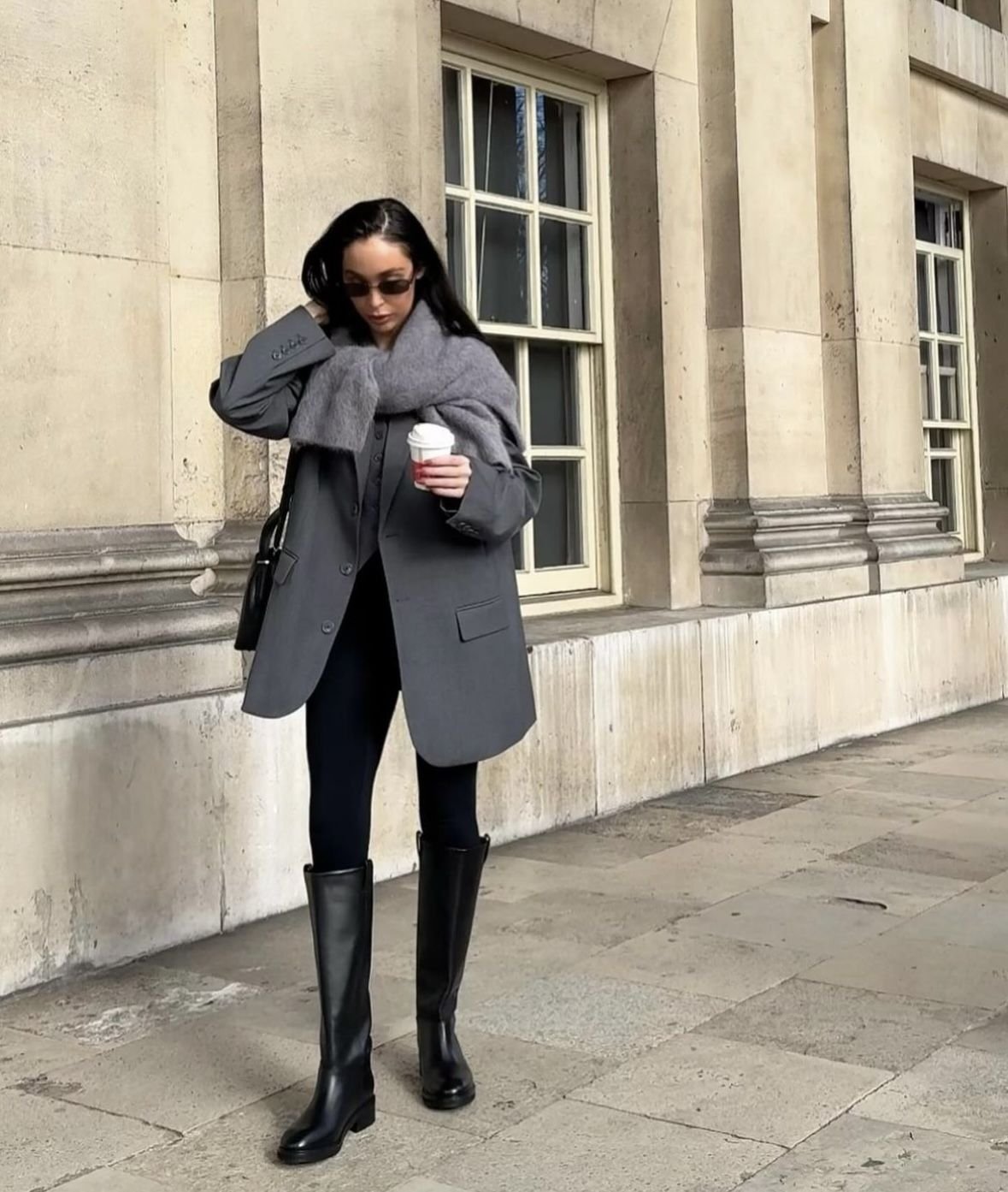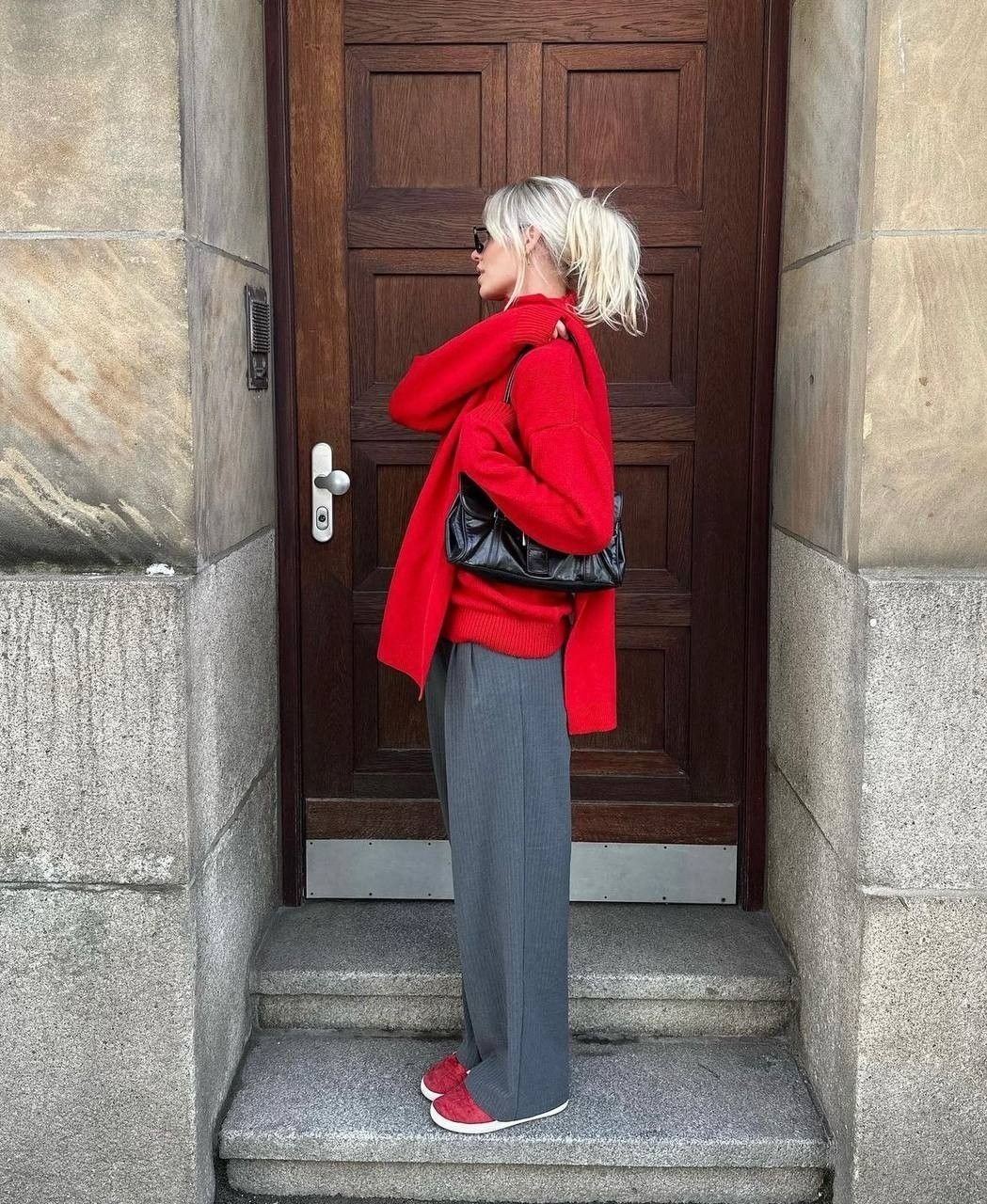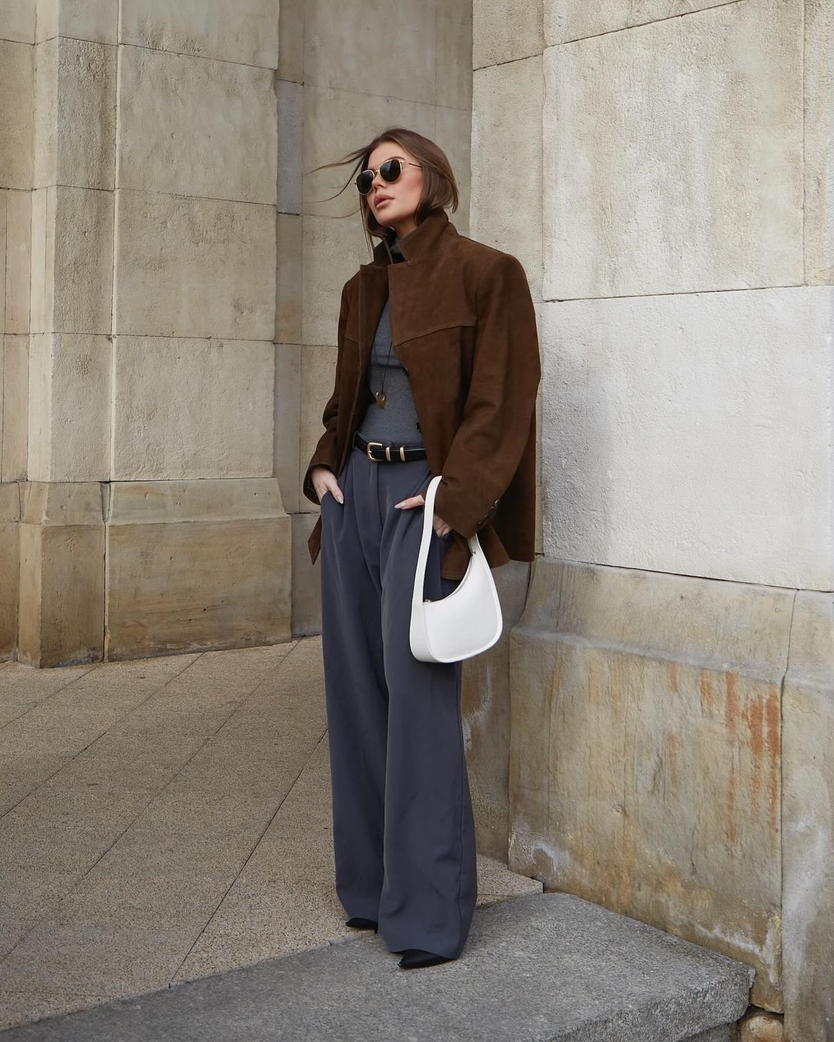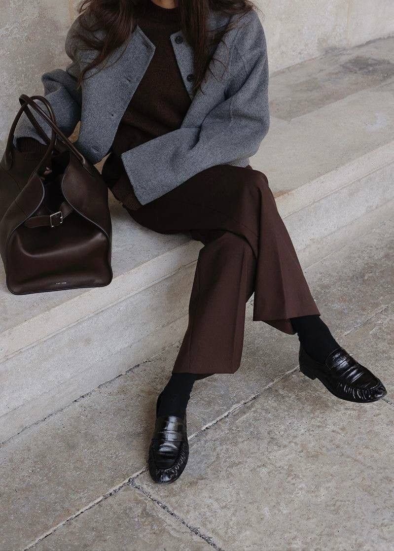 Сірий залишається безперечним фаворитом у будь-яку пору року. Восени він звучить особливо актуально, стаючи витонченою альтернативою чорному: достатньо світлий, щоб не виглядати похмуро, і водночас стримано елегантний.