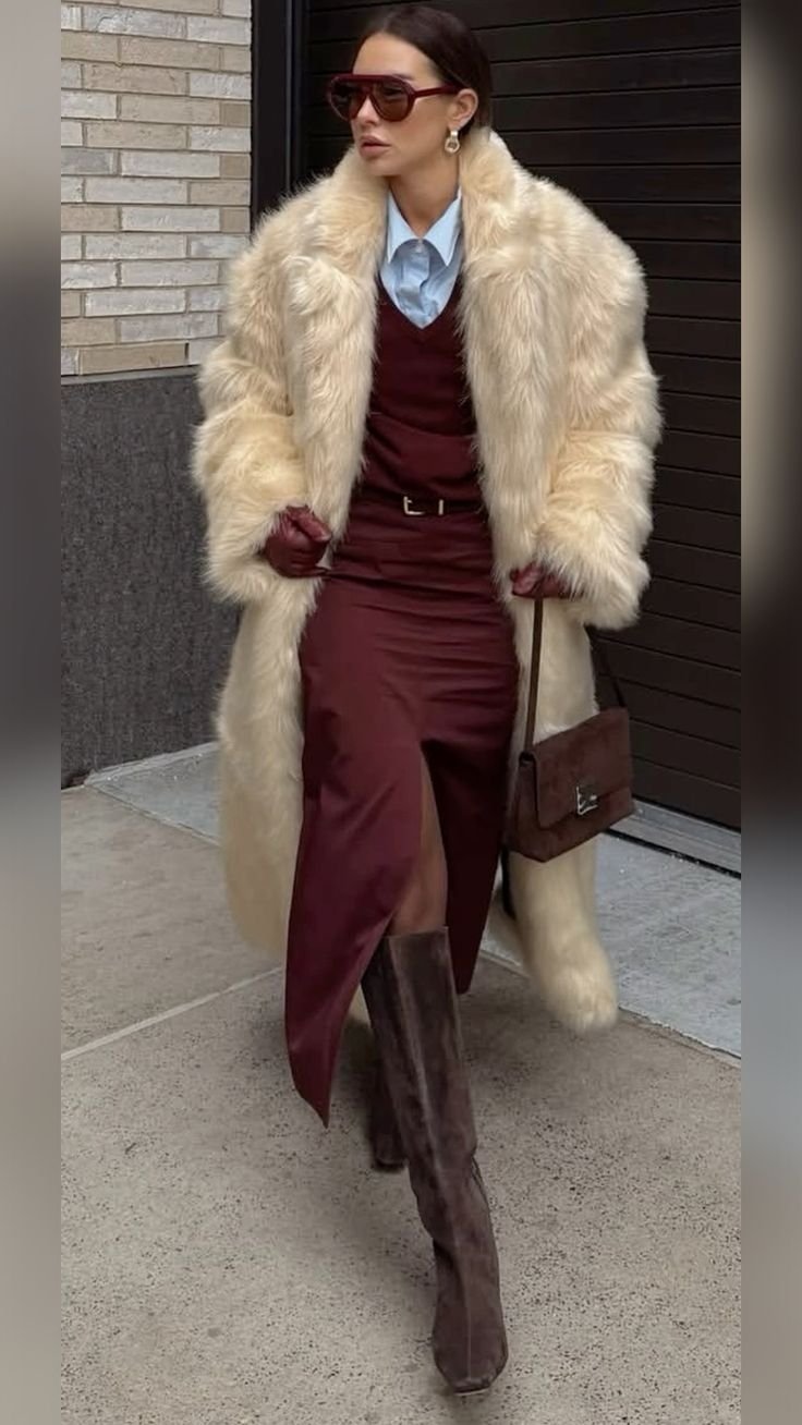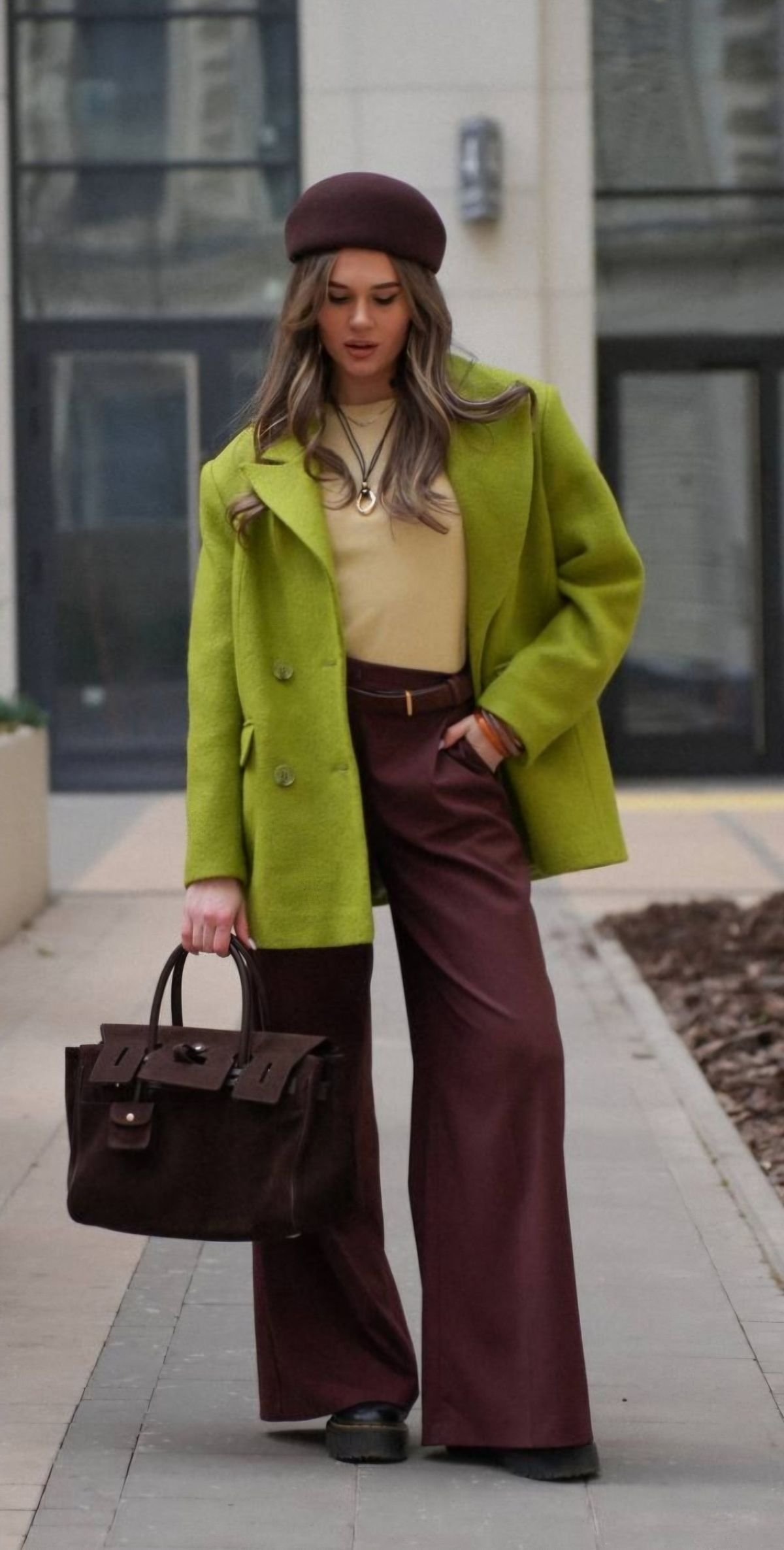 Шоколадний виглядає особливо розкішно у total-look або в поєднанні з бордовим — це елегантність із легким драматизмом.