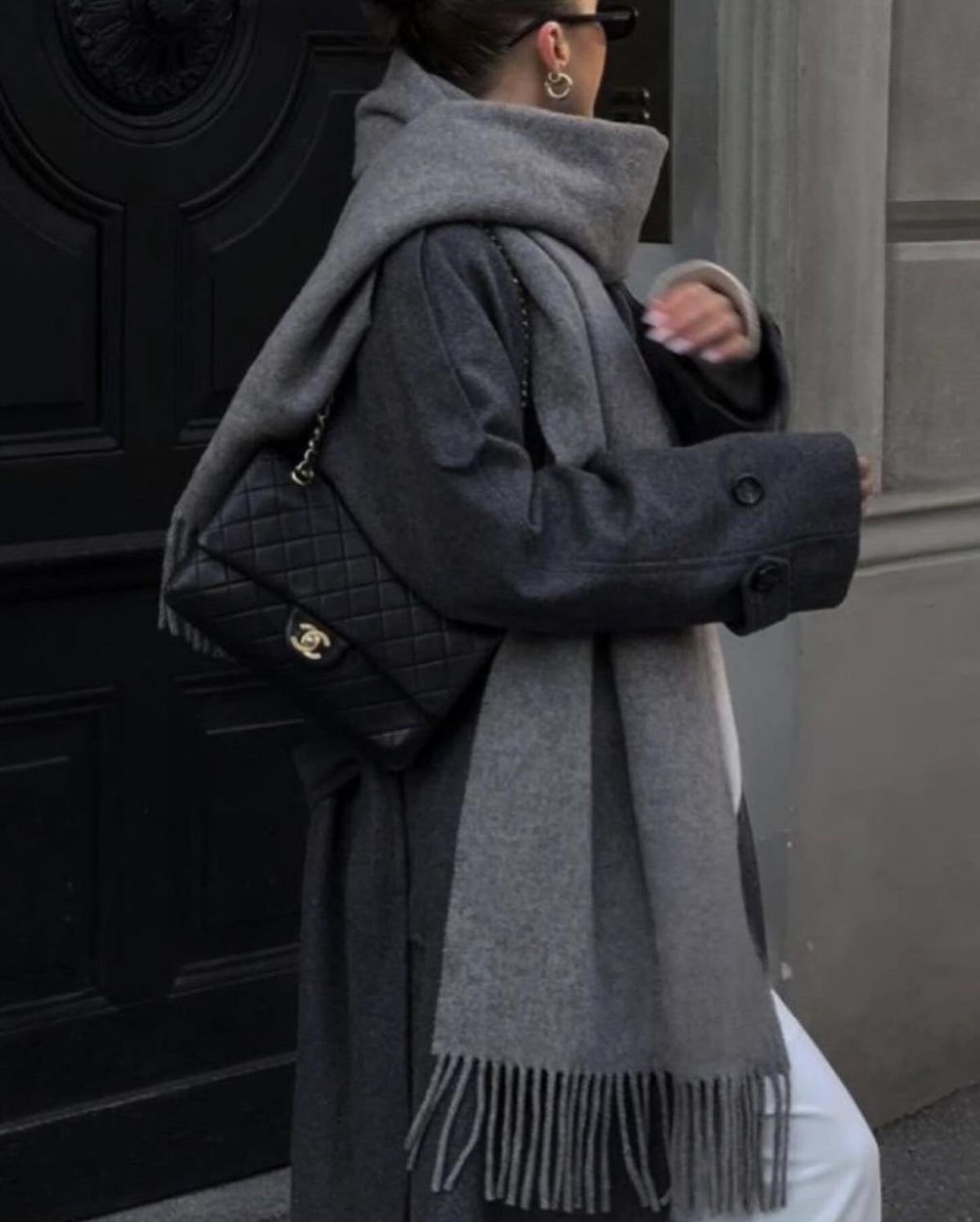 Абсолютна база, яка працює роками. Такий шарф — інвестиція у гардероб, що ніколи не підведе. Кольори must-have: сірий, бежевий, camel і чорний. Вони легко комбінуються з будь-яким верхнім одягом і доречні як у повсякденних, так і в більш елегантних образах.