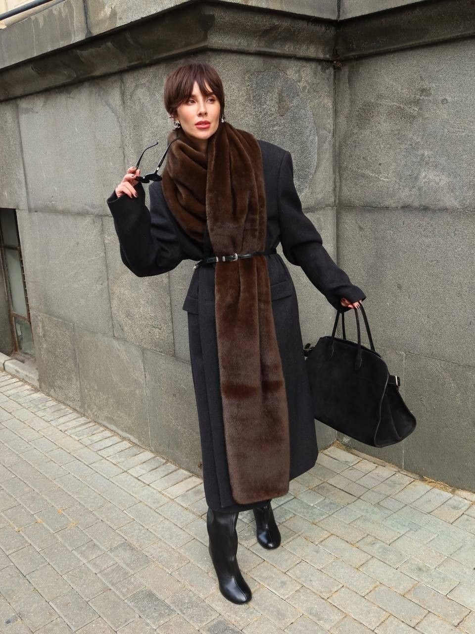 Шарфи з екохутра — головний акцент сезону й найпростіший спосіб додати образу розкоші без зайвих зусиль. Екохутряні шарфи у молочному, шоколадному чи графітовому відтінках особливо ефектно виглядають у поєднанні з лаконічними пальтами прямого крою або мінімалістичними пуховиками.