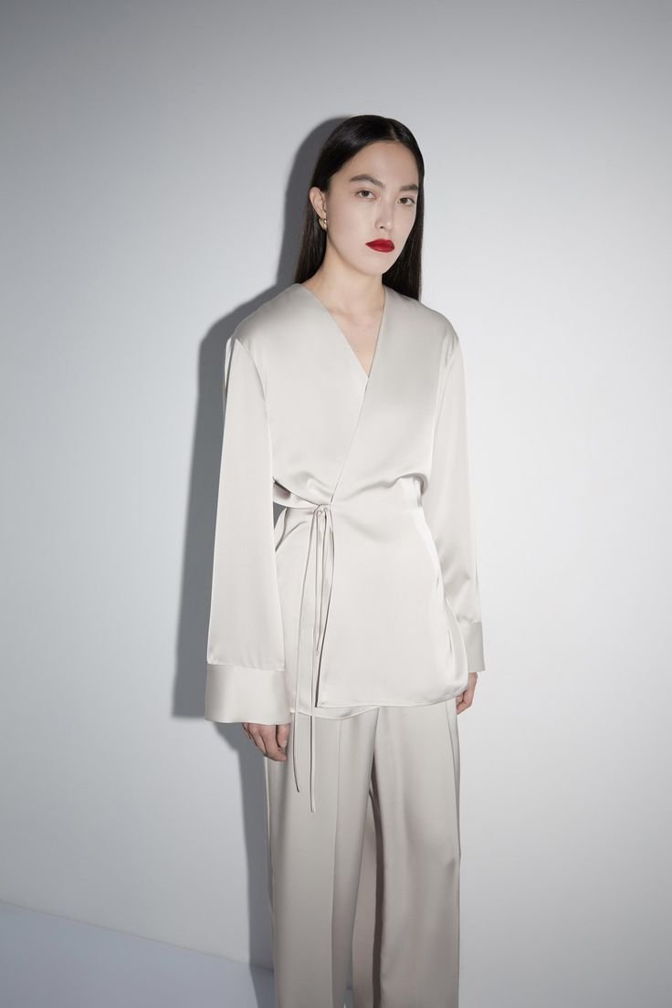 Шовк туса. На відміну від класичного гладкого шовку, туса має нерівномірну вузликову структуру. Це підкреслює автентичність та відмову від штучного глянцю.