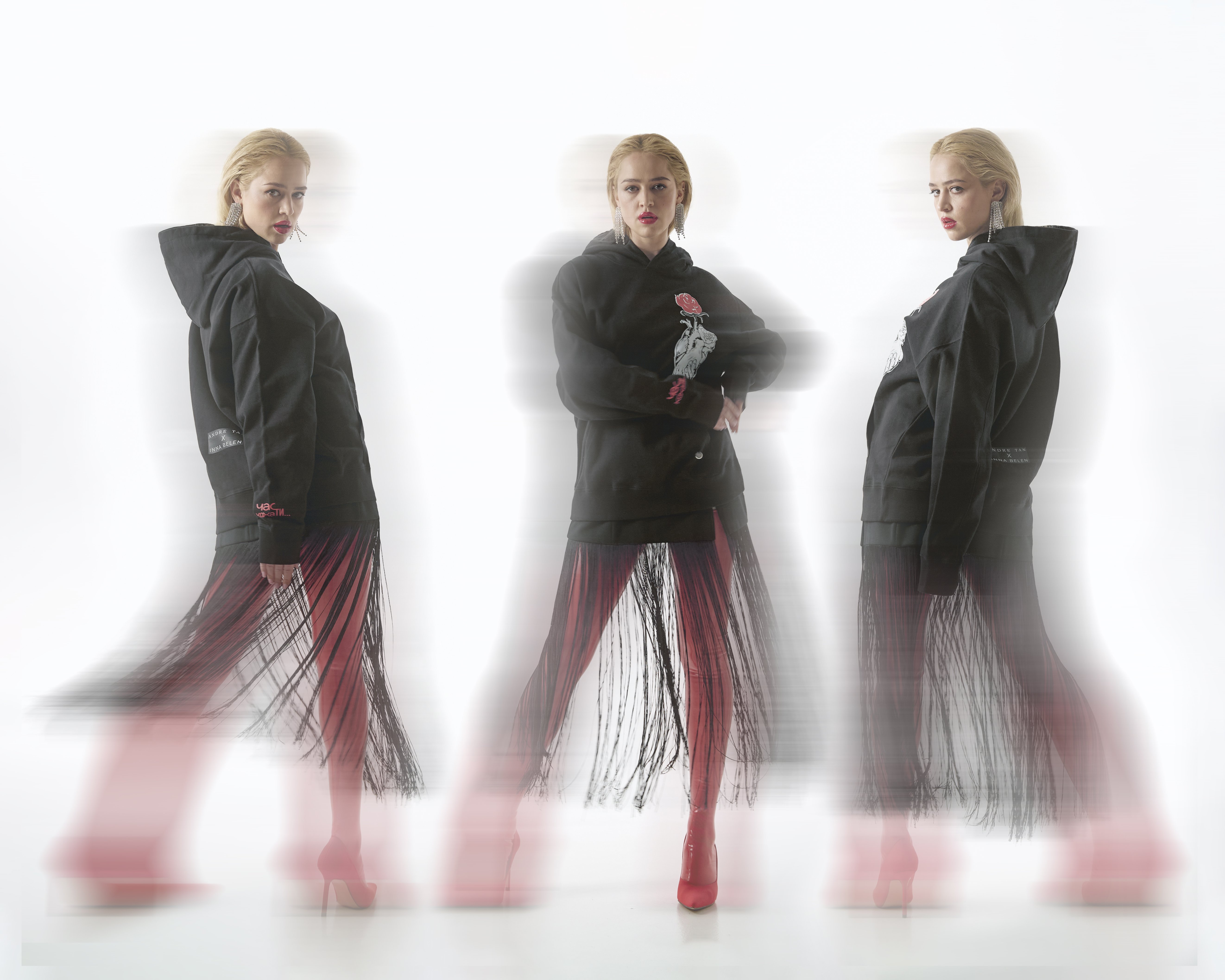 До колекції увійшли речі в стилі streetwear: білі та чорні худі, футболки й сорочки, прикрашені делікатними принтами троянд. Для Інни цей символ має особливе значення: червона троянда, отримана у фіналі "Холостяка" від Олександра Терена, стала для неї не лише знаком перемоги, а й уособленням віри в себе.