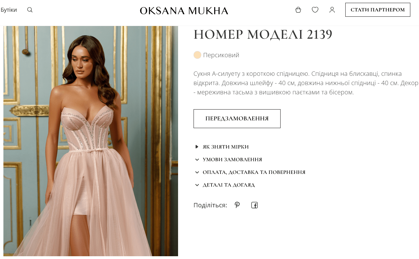 На сайті бренду зазначається, що сукня моделі №2139 наразі на передзамовленні.