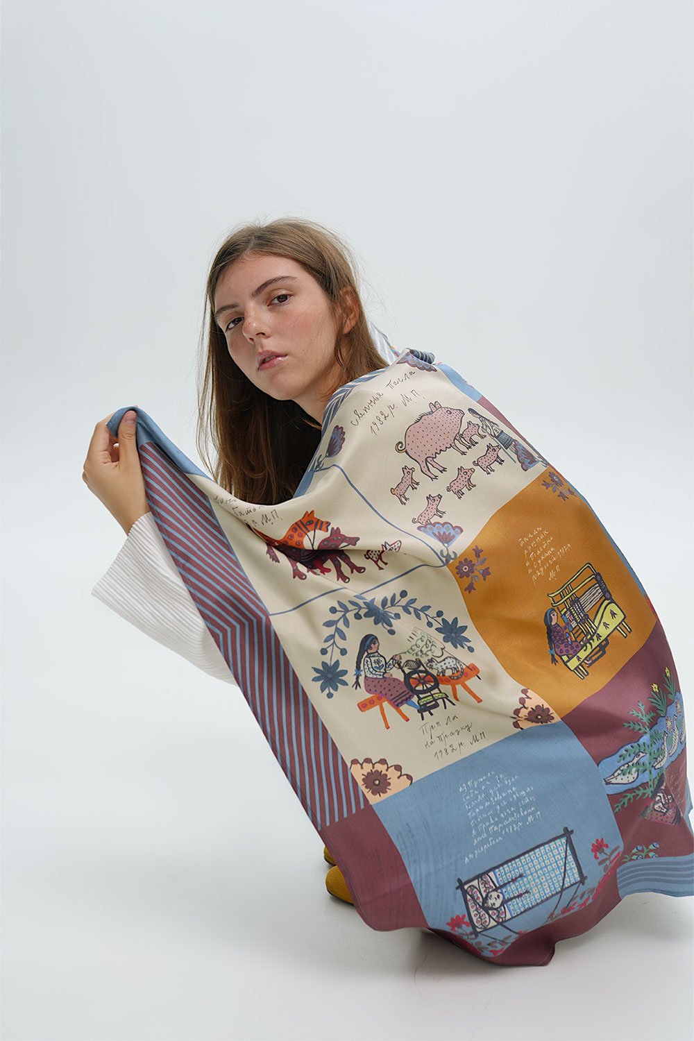 Співпраця з Prymachenko Foundation відкриває нову сторінку в роботі з архівами родини художниці. Фонд уперше дозволив використати у дизайні хустки ексклюзивні ілюстрації Марії Примаченко, які були створені для її автобіографічної книги, яка так і не була опублікована.