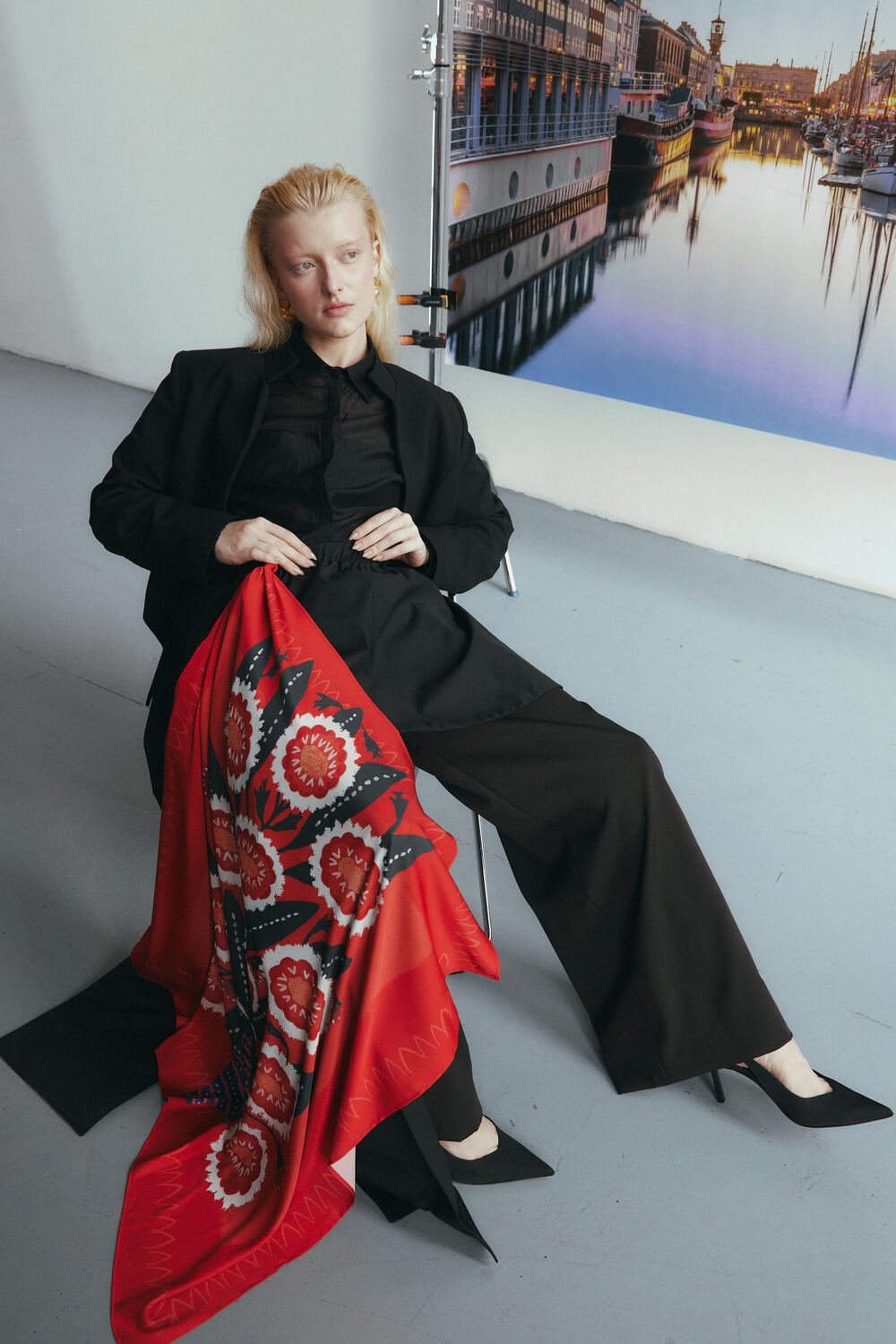 Вона каже, що співпраця з [не] Хустка стала ще одним способом продовжити життя картин і вивести їх за межі музею — у повсякденність, стиль та державні комунікації.