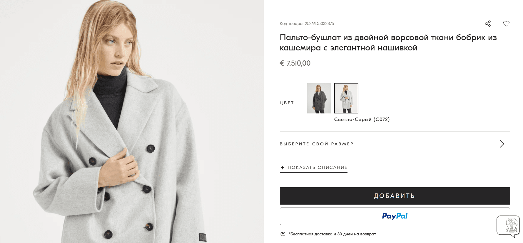 Пальто-бушлат від італійського бренду Brunello Cucinelli. Фото: brunellocucinelli.com