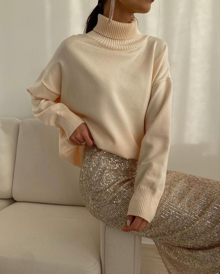 Блискітки взимку — не табу, а гарний спосіб привнести у будні трохи свята. Головне правило — баланс: яскрава спідниця має поєднуватися з нейтральним верхом — трикотажем, кашеміром чи стриманим жакетом. Так вона виглядає не “вечірньо”, а сучасно та впевнено.