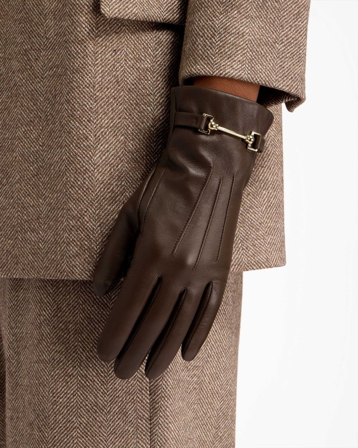 Це не просто практичний елемент, а стильний маркер. Ксенія радить звертати увагу на благородні, але не базові відтінки — бордовий, темно-зелений, кремовий. Такі рукавиці зчитуються як точний та продуманий акцент і гармонійно доповнюють інші шкіряні деталі — пояс, чоботи чи сумку.