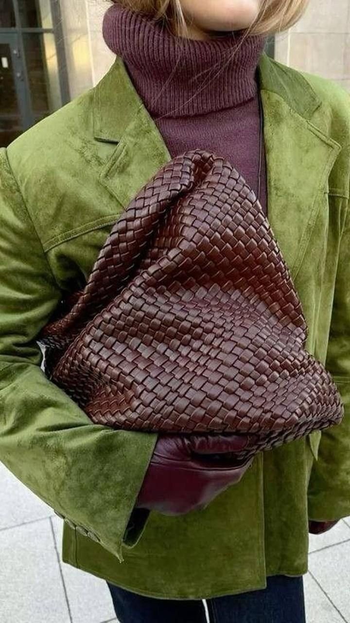 Абсолютний фаворит року. Плетена шкіра переосмислює класичні силуети, надаючи навіть найпростішим формам глибини й характеру. Такі сумки органічно виглядають у мінімалістичних і лаконічних образах, де головна роль належить фактурі. На тлі ринку, переповненого мінливими аксесуарами, плетіння виглядає як тиха демонстрація смаку та свідомого вибору, підкреслюючи майстерність ручної роботи й преміальну естетику без надмірностей.