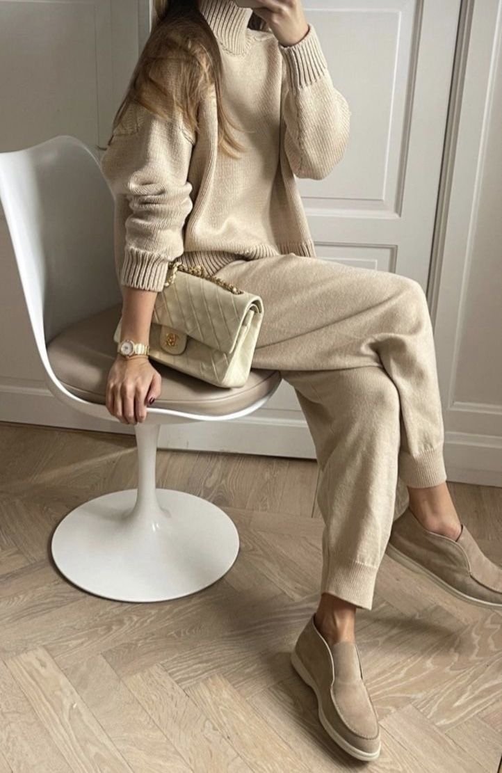 Якщо ви досі вважаєте, що трикотажні штани — це лише для дому, настав час змінити думку. Сучасний в’язаний сет із широкими штанами та подовженим джемпером виглядає дорого та зібрано.