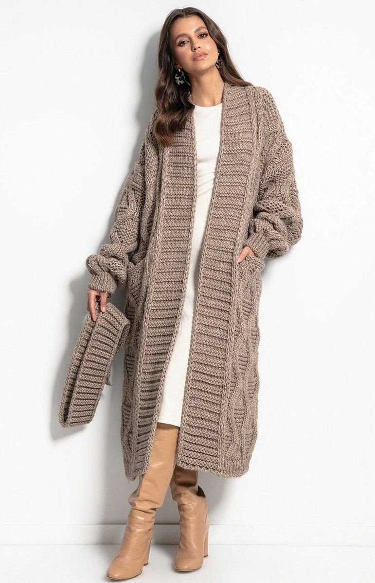 Кардиган грубої в’язки — це головна альтернатива легкому тренчу чи джинсовці. Він додає образу необхідної фактури та м’якості.