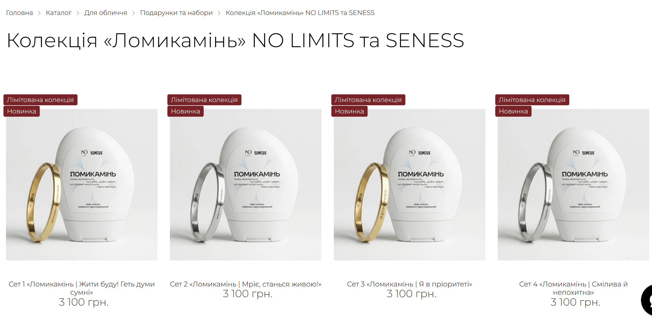 Колекція «Ломикамінь» є лімітованою та є доступною до придбання протягом наступних двох тижнів. Браслети й крем можна знайти на офіційній сторінці бренду NO LIMITS. Вартість будь-якого з чотирьох доступних сетів становить 3100 грн.