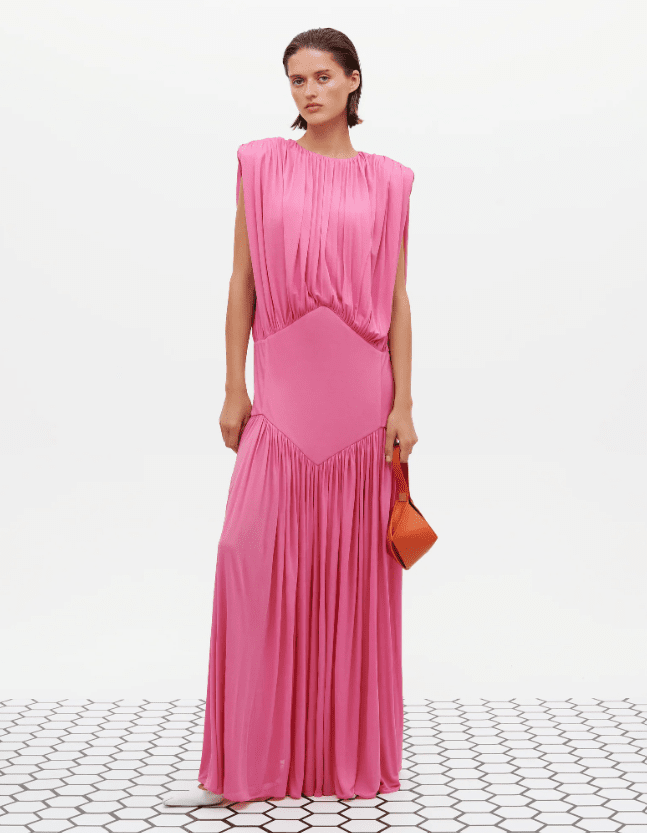 Серед ключових тенденцій залишаються сукні із заниженою лінією талії. Такий крій формує витягнуту пропорцію та додає образу легкої елегантності. Натхненням для цього силуету стали 1920-ті роки, але в сучасних колекціях він виглядає більш витончено.