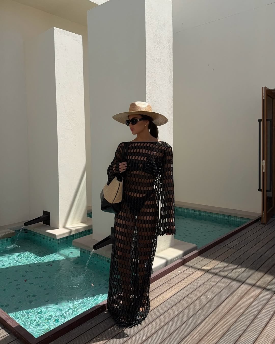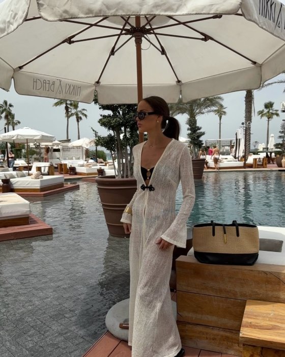 А щоб не згоріти на сонечку радимо придивитись собі довгу накидку з рукавами. В тренді напівпрозорі моделі та, звісно, мереживо. Й не забувайте про аксесуари: солом’яні сумки, капелюхи та золоті прикраси — все це вітається.