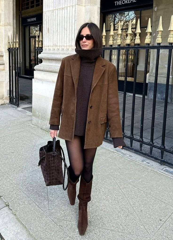 Замша — ще один тренд осені 2025 року. Тому не дивно, що жакети з цього матеріалу мають особливу популярність серед модниць. Якщо ви плануєте купувати свій перший жакет — замшу радити не будемо, адже назвати такий жакет класикою — не можна. Але якщо шукаєте цікаву модель для осінніх образів, звісно, спробуйте цей тренд.