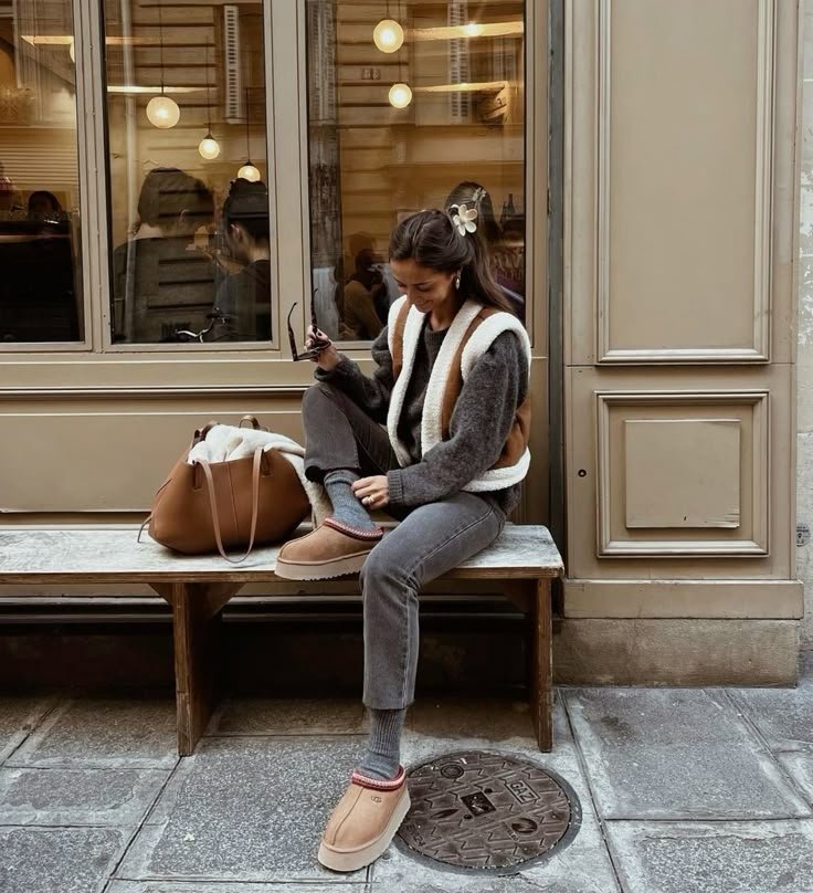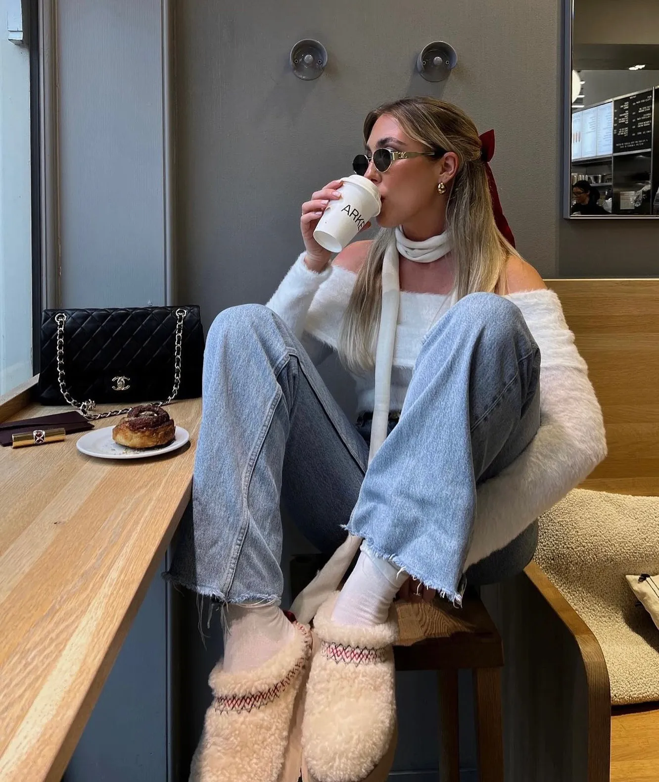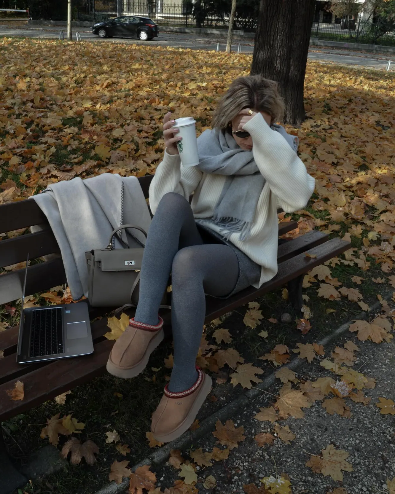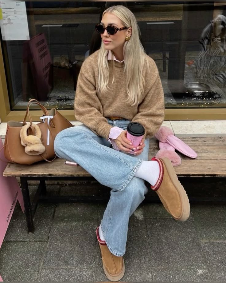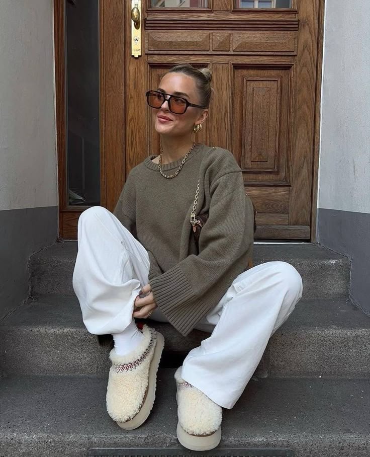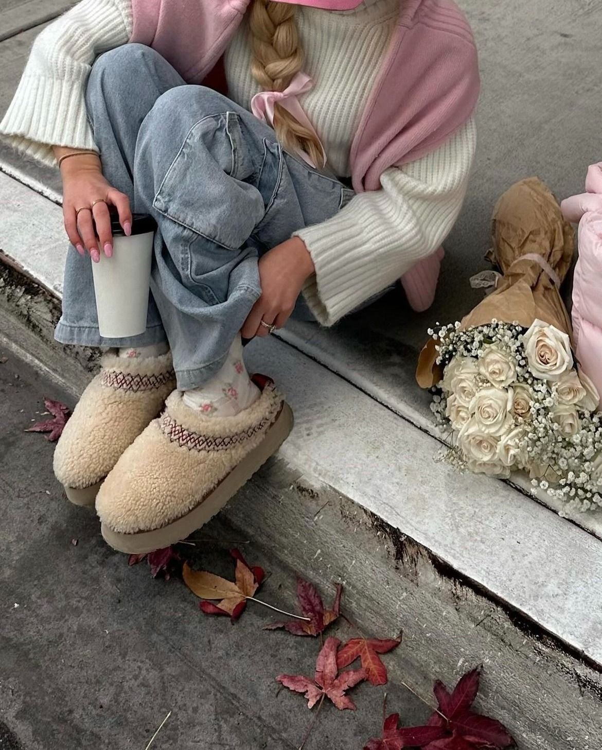 Найпопулярніший фаворит у холодну пору — затишні уггі. Але якщо високу модель поки ще зарано носити, то укорочені варіанти — саме те, що потрібно.
