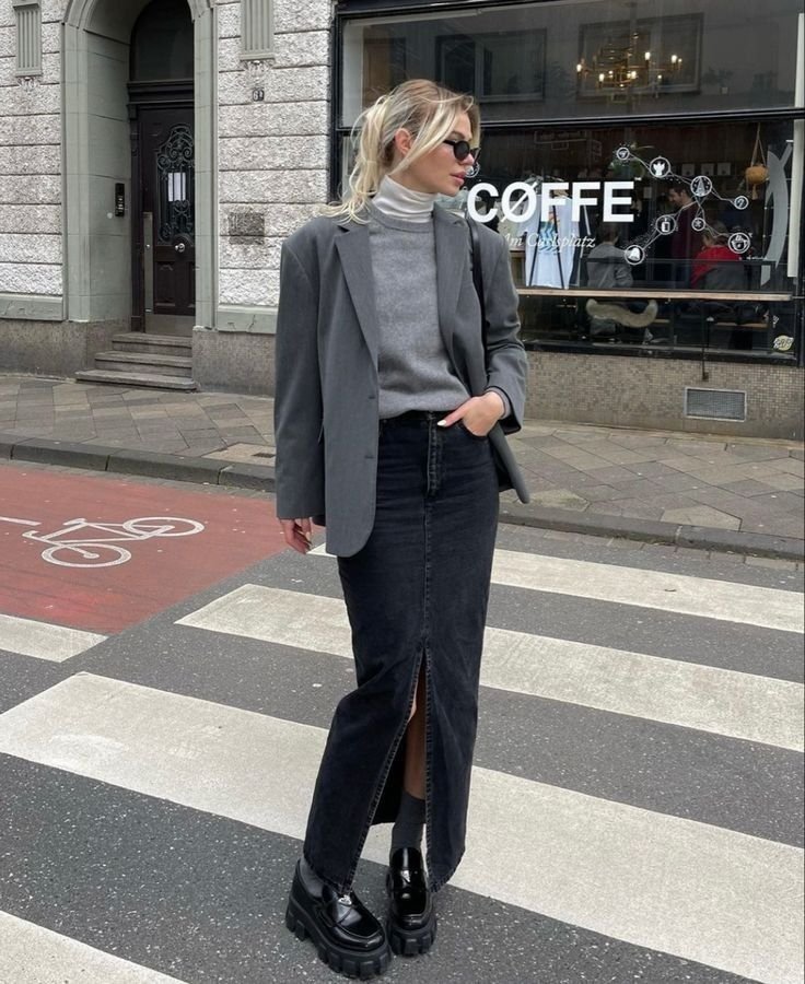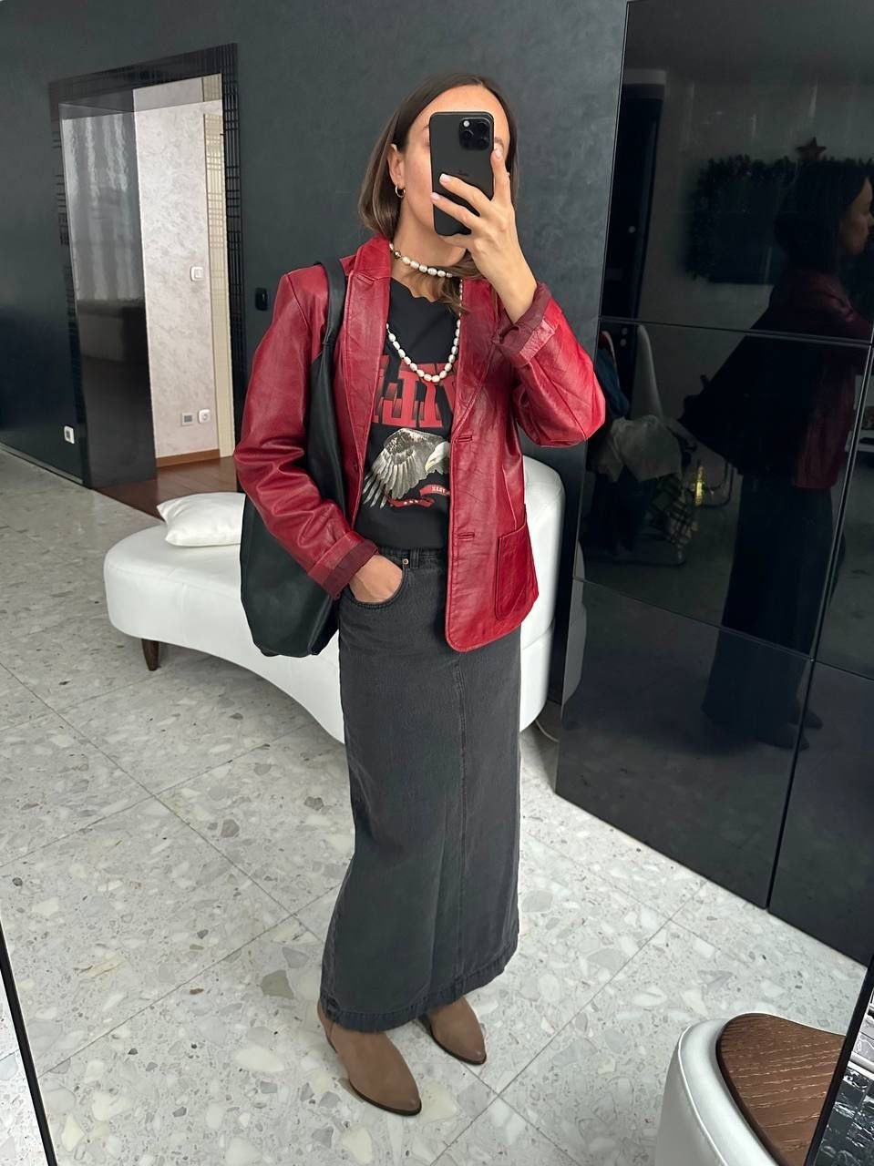 Джинсова спідниця максі — це взагалі класична річ, яка виручить вас в будь-який сезон. Одягнувши колготки під низ чи обравши утеплену модель, ви зможете носити її навіть в морози! Ще одна перевага спідниці з деніму в тому, що вона легко поєднується з будь-якими речами та виглядає невимушено. В ній можна піти та на побачення, і на роботу, і на свято. Обирати радимо моделі в темних кольорах — глибокому синьому, сірому та чорному.