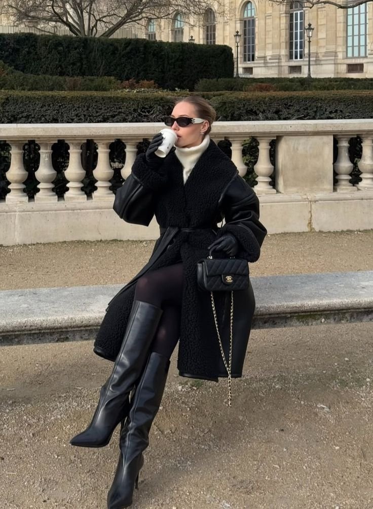 А ось щодо самого матеріалу пальто, у 2025-2026 році в тренді будуть не тільки базові моделі з шерсті, а й цікаві шкіряні варіанти. Вони мають дуже цікавий вигляд. Погляньте далі самі!