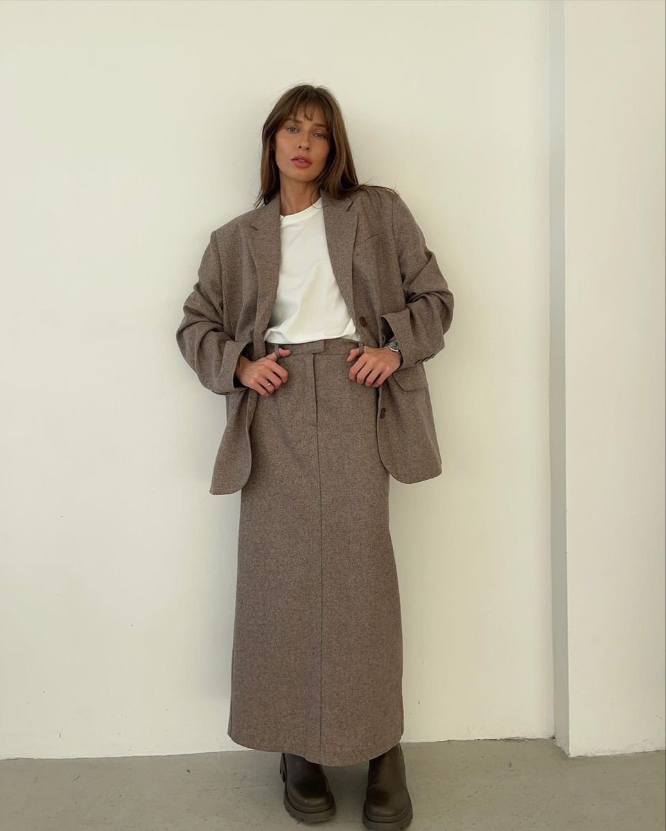 Коли хочеться максимального комфорту, трикотаж — наше все. Особливо актуальні теплі сети з довгою спідницею та м’яким джемпером. Фешн-експерти радять додавати до такого комплекту шовковий або атласний топ із мереживом — це один із ключових трендів сезону.