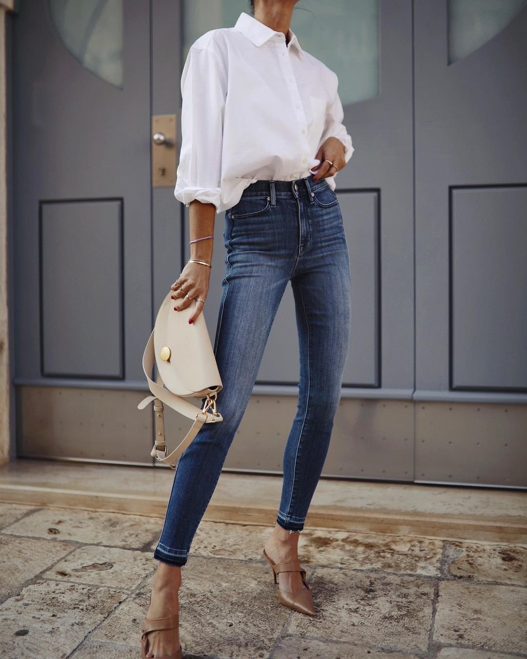 У новому сезоні джинси скінні пропонують поєднувати з актуальними елементами: об’ємними шубами, короткими топами, трикотажними жилетами та виразними, масивними аксесуарами. Саме такі контрасти роблять образи сучасними й стильними.