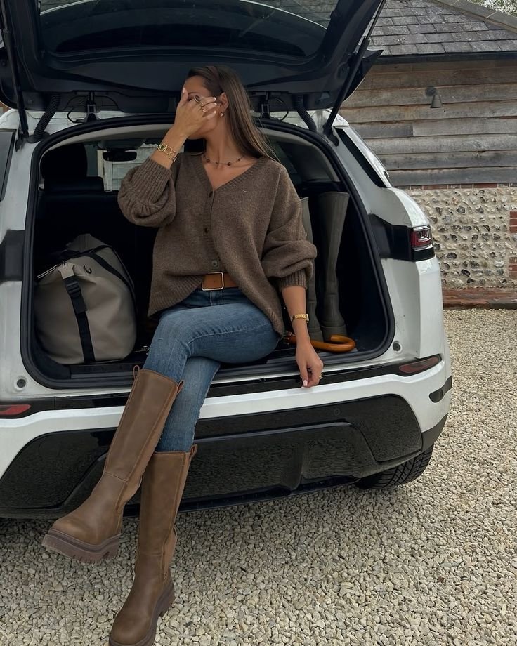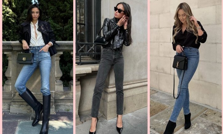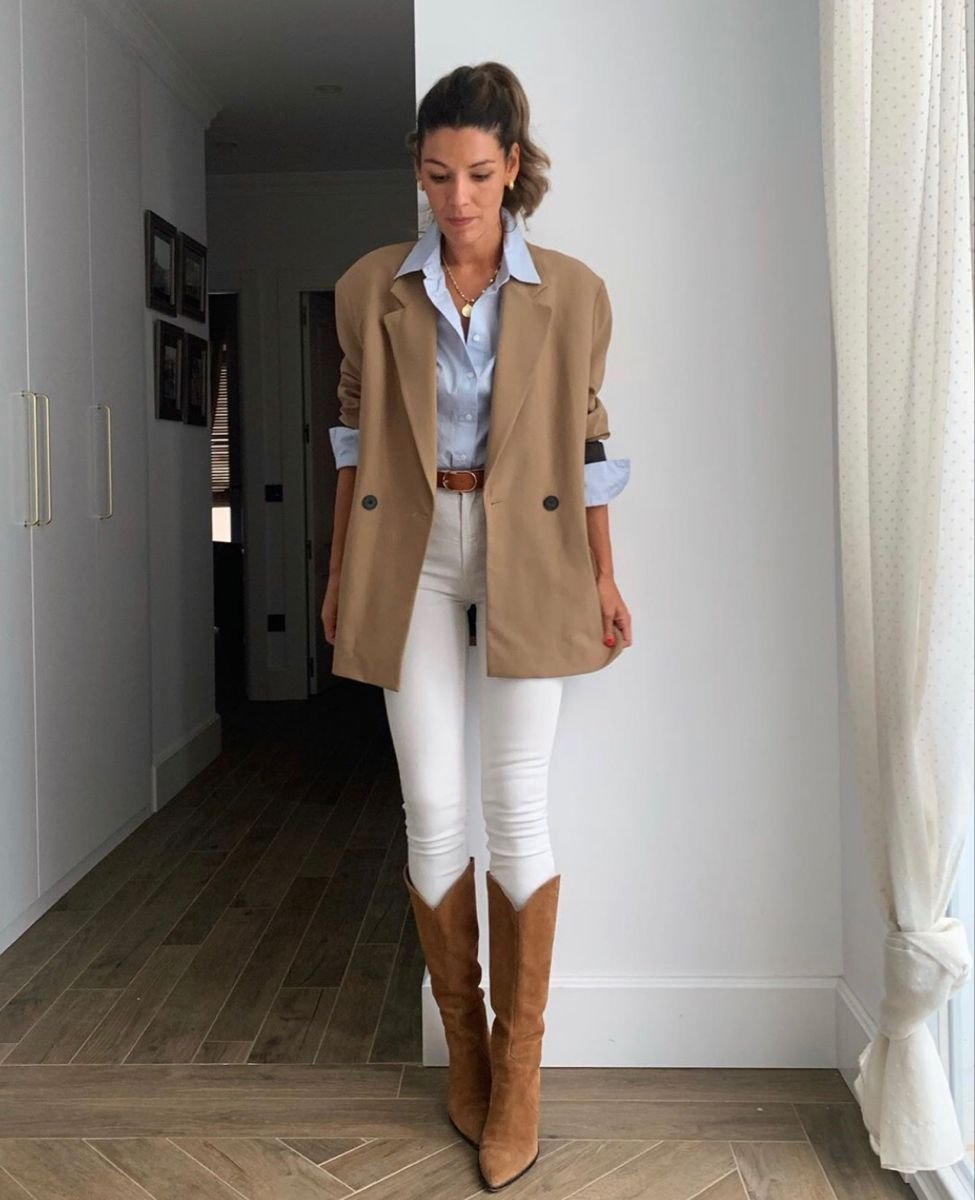 Також особливо актуальною буде стилізація вузьких джинсів з широкими та високими чоботами. Такі образи зазвичай доповнюють подовженими жакетами чи куртками. Ось, кілька стильних прикладів з фото.