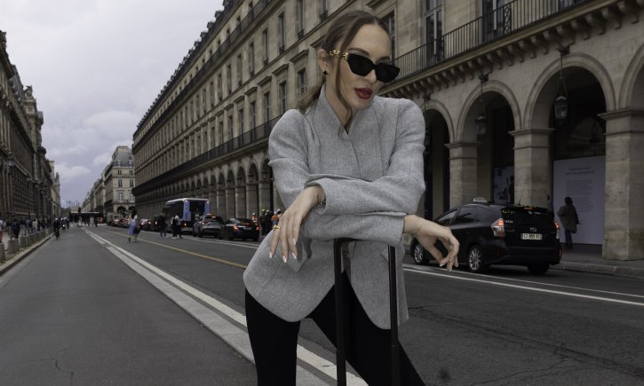 Щодо аксесуарів, то ключову роль відіграють сережки, пояси та окуляри. Особливо актуальні прозорі окуляри — цей прийом зараз активно використовує Saint Laurent: поєднання жакета, прозорого топа й масивних окулярів із прозорими лінзами виглядає стильно та легко адаптується до повсякденного життя.