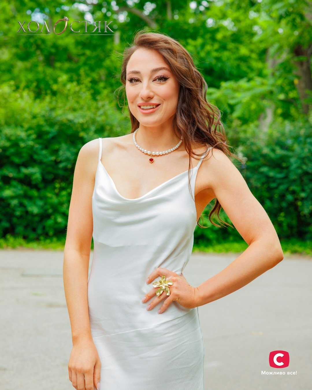 Ще одна фаворитка Тараса Цимбалюка — Настя — робила ставку на сміливіші вбрання, які точно привертали увагу головного героя. Сукні з блискітками, білизняний стиль та корсети — ідеальний вибір для Дня Валентина.
