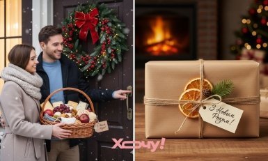 Часу бігати магазинами немає, тому виходити треба з того, що є. Насамперед пляшка ігристого чи сухого вина. Цукерки чи шоколад загорніть у крафтовий папір, обмотайте мотузкою та приклейте сушені апельсини та гілочку ялинки. Це одразу створює новорічний настрій.