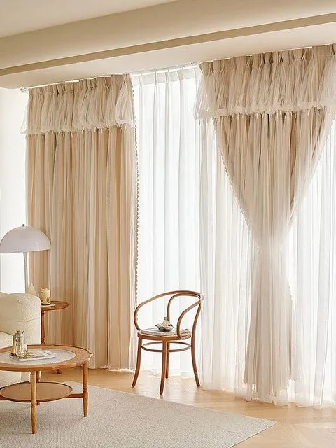 Оновити штори можна додавши до них додатковий шар. Це може бути прозора тканина або більш щільний варіант.