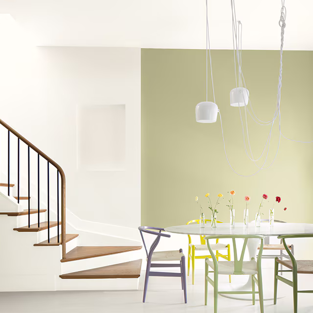 • Зелений. Трав’яні вібрації надихають і поєднують з природою. Зелена стіна допомагає розмежувати обідню зону для гостей та родини.
