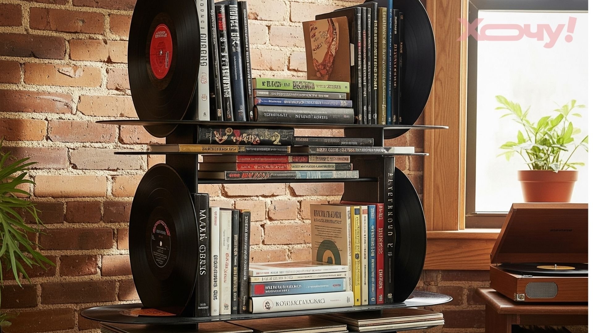 Книжкова полиця. З кількох платівок і невеликих опор можна створити унікальну книжкову полицю для улюбленої бібліотеки.