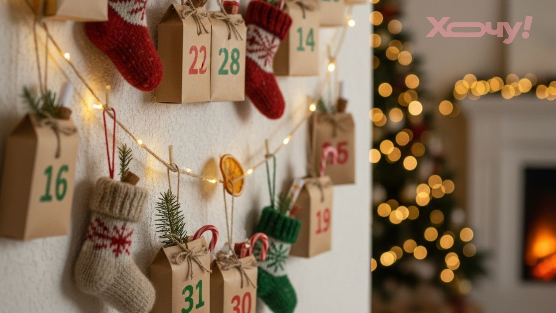 Підвісьте на мотузці чи гірлянді 31 маленький крафтовий пакунок або шкарпетки з номерами. Це не лише розвага з передбаченнями, маленькими подарунками чи солодощами, а й чудова настінна інсталяція.