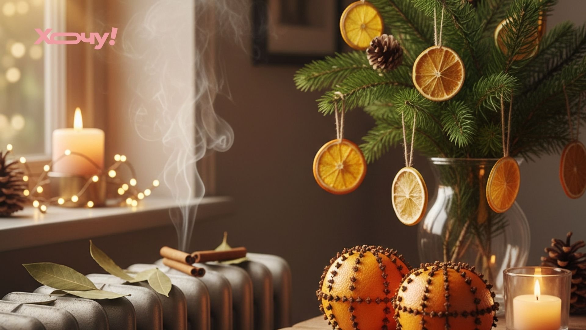 Приємний свіжий запах — це 50% атмосфери. Використовуйте натуральні ароматизатори: покладіть лаврове листя та палички кориці на теплу батарею та встроміть у мандарини бутони гвоздики. Розставте у вази гілочки ялинки з сушеними апельсинами.
