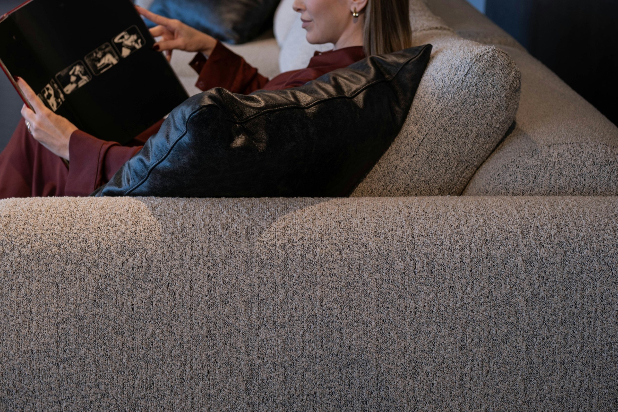 Текстиль відіграє величезну роль у сприйнятті інтер’єру. Оксамит, букле або тканини з м’якою фактурою роблять кімнату більш затишною та візуально дорожчою. Достатньо додати декоративні подушки, плед або новий текстиль на диван чи ліжко, щоб освіжити простір.