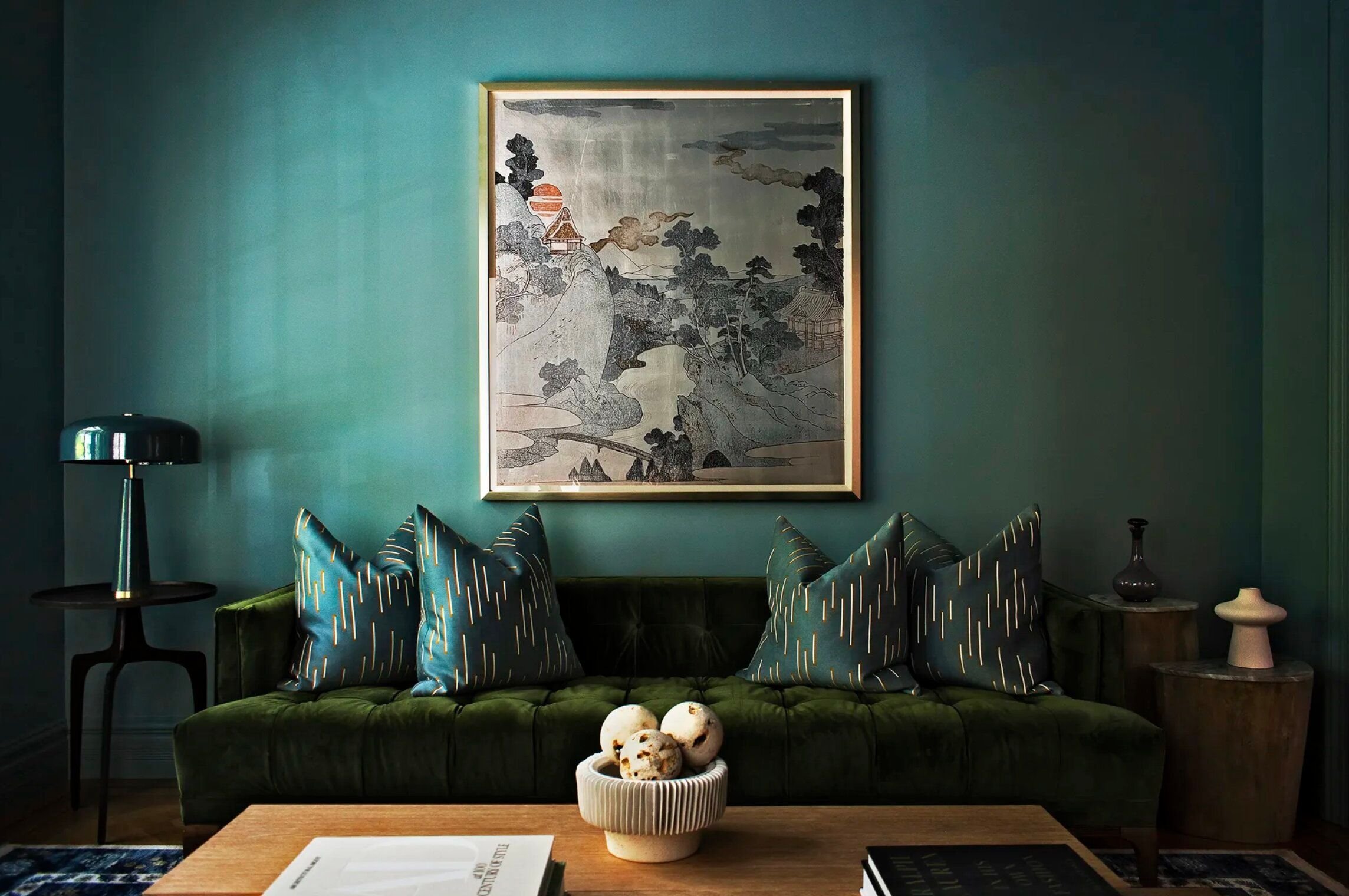 Синьо-зелений відтінок додає свіжості та “дихає” в інтер’єрі. Його часто використовують у спальнях і вітальнях - там, де важлива атмосфера спокою.