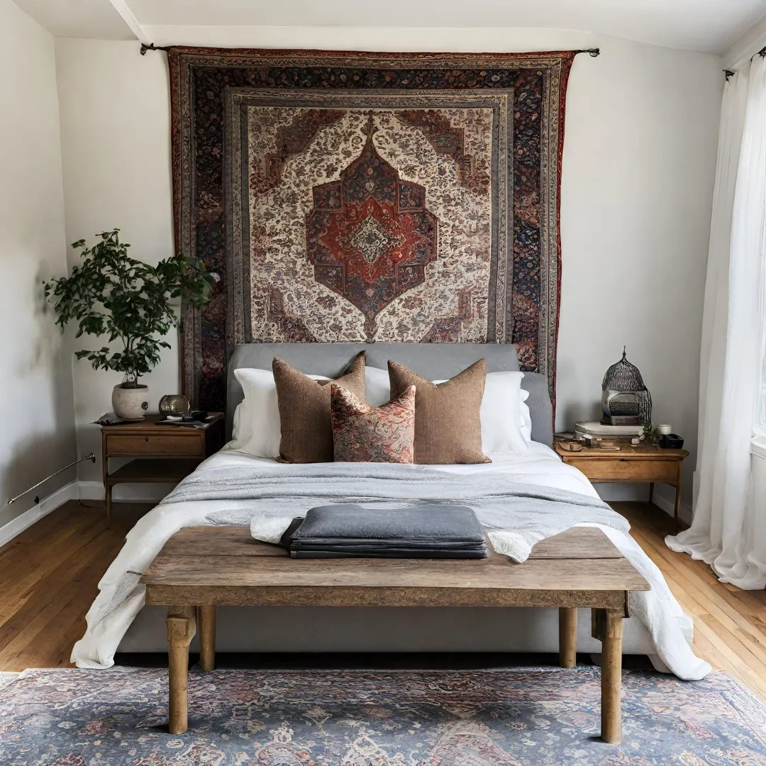 Килим на стіні за ліжком в спальні. Фото: roxannajaye.com -
