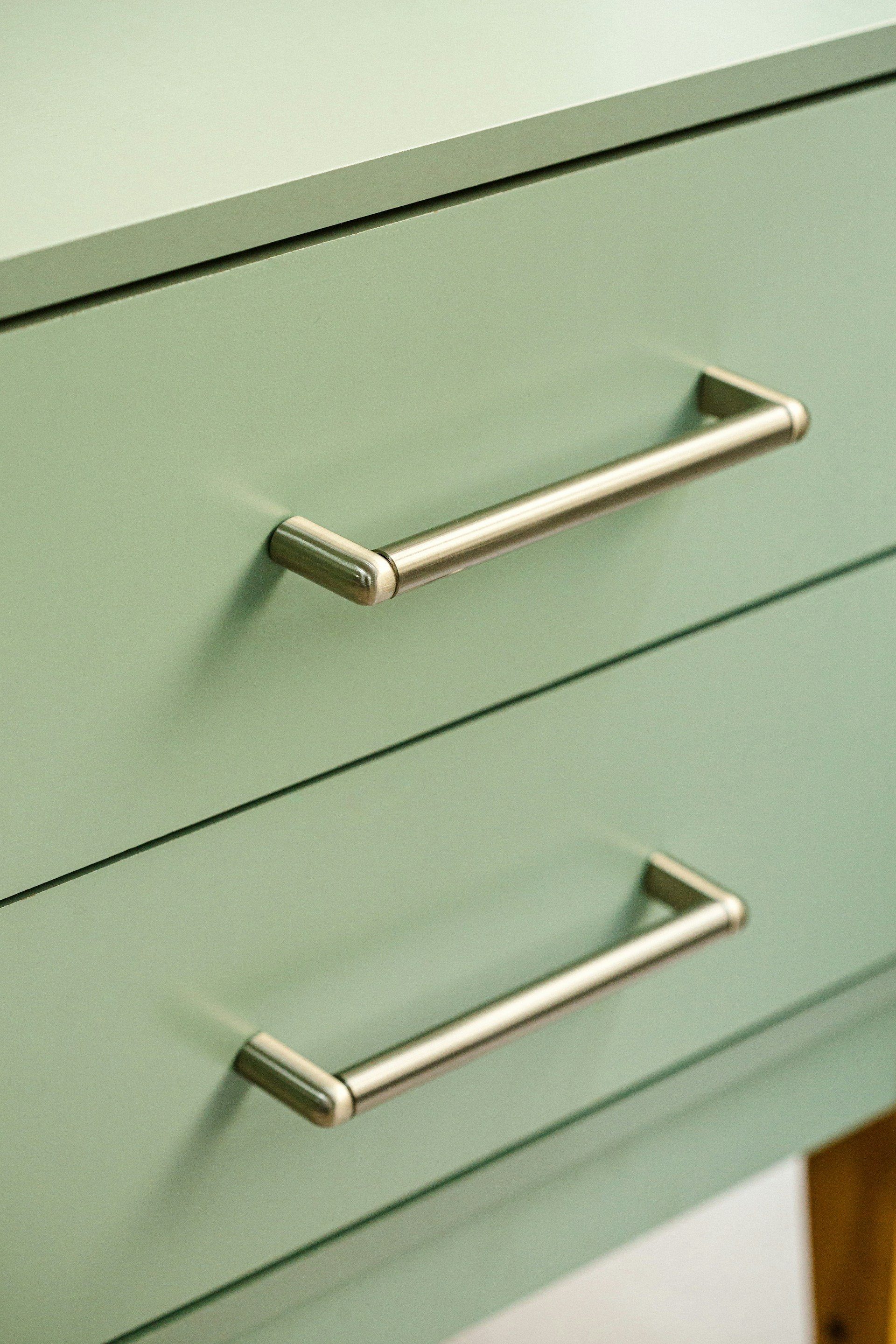 Ще один швидкий апгрейд — заміна фурнітури. Базові ручки від виробника виглядають дешево і псують загальне враження. Натомість якісні металеві варіанти одразу додають кухні свіжості.