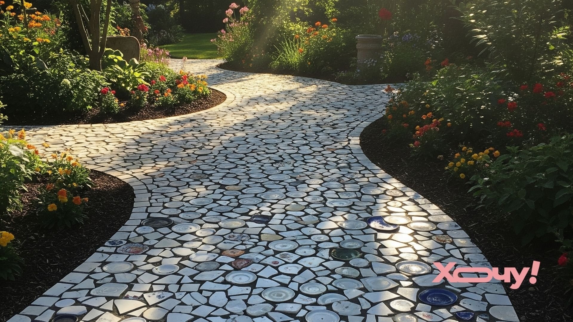 Розбитий посуд. З тарілок та чашок може вийти крутий декор для саду. Використовуйте шматки для мозаїчних доріжок, оформлення бордюрів грядок або декорування квітників.
