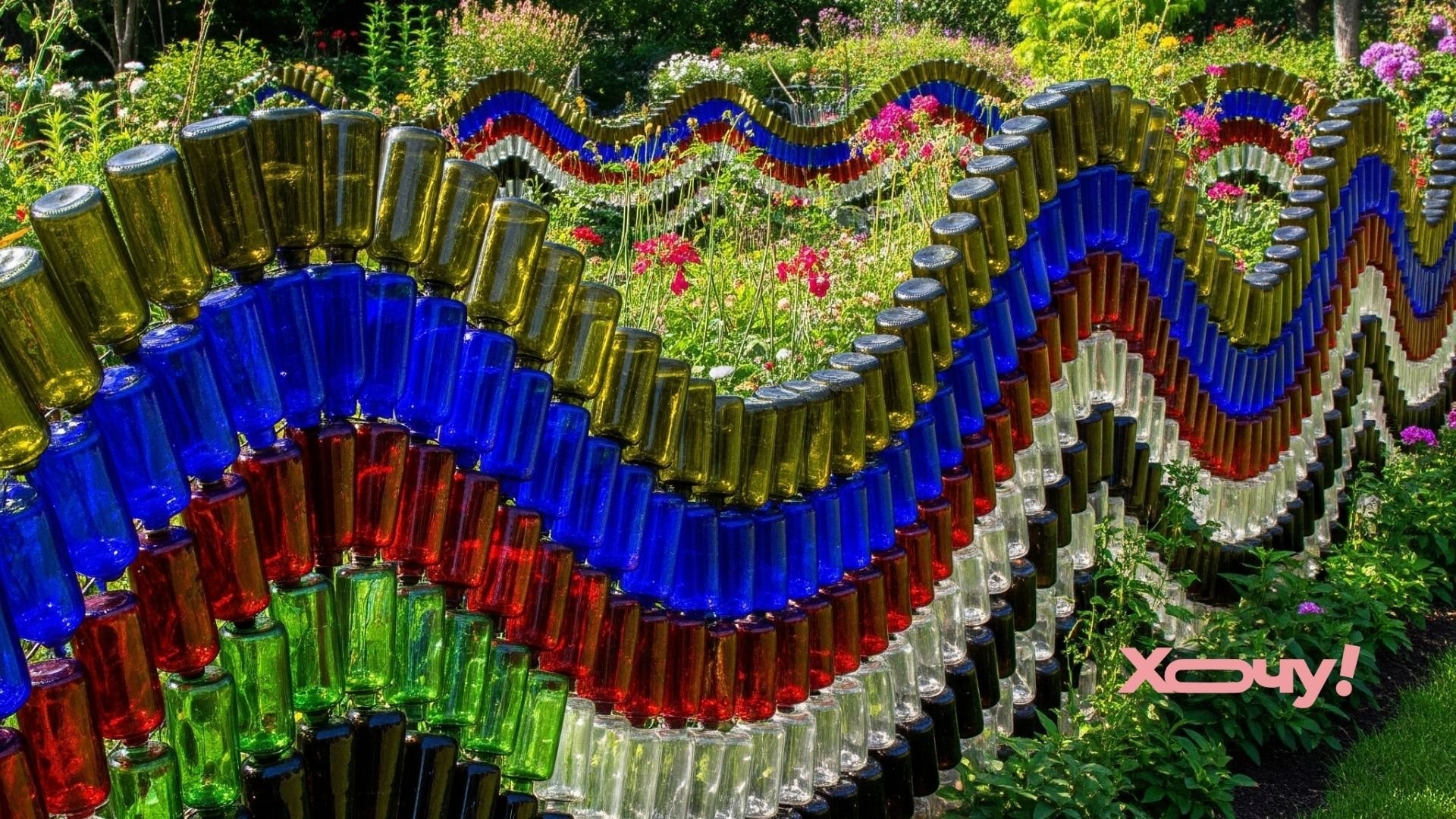 Скляні пляшки. Вкопайте їх догори дном як оригінальний бордюр для клумби. Або поекспериментуйте з різними кольорами та зробіть з них декоративні огорожі.