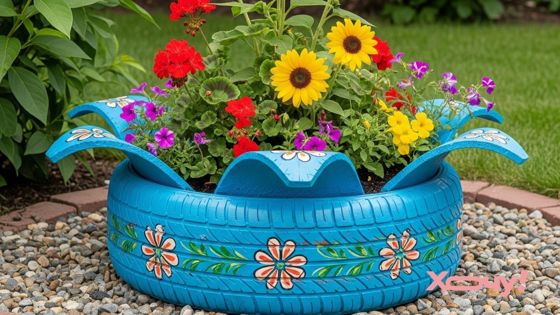 Старі шини. Розфарбуйте їх у кольори веселки та використовуйте як багаторівневі грядки для овочів, трав чи квітів. Можна скласти їх пірамідою чи вирізати веселі фігурки.