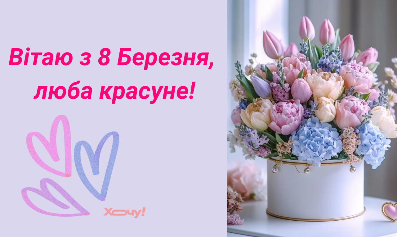 Березень офіційно вривається в чати з нескінченним потоком листівок та стратегічними роздумами чоловіків біля квіткових лавок. Це той самий день, коли кожна жінка стає головним об'єктом уваги, навіть якщо вона просто вийшла по хліб у домашньому худі. Світ раптом згадує, що весна — це не лише про погоду, а про ту неймовірну енергію, яка змушує все навколо рухатися і квітнути. Раніше ми публікували прикольні тости з 8 Березня, а тепер “Хочу” поділиться добіркою щирих вітань з нагоди свята у прозі, віршах, листівках і картинках.