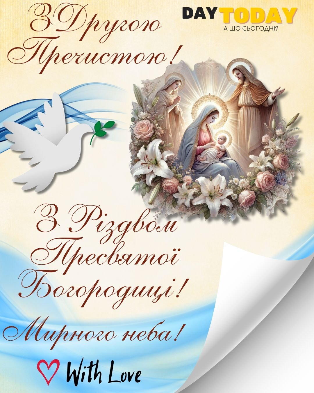 Друга Пречиста 2025: душевні привітання та листівки з Різдвом Пресвятої Богородиці українською