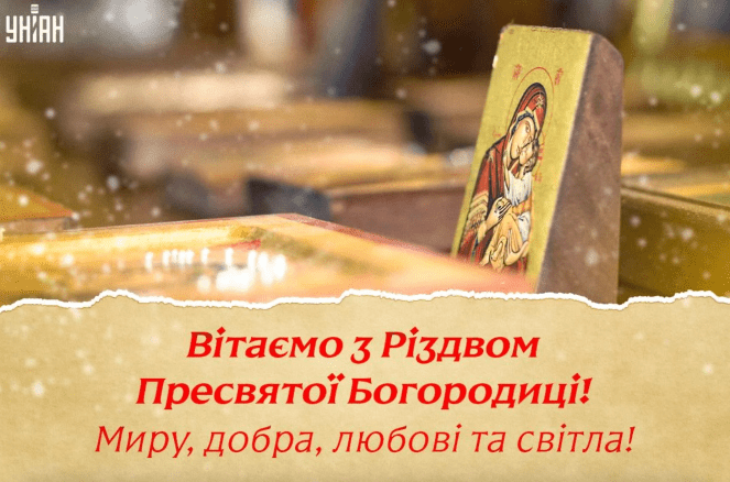 Вітаю з Різдвом Пресвятої Богородиці. Бажаю впускати у своє серце тільки світлі почуття, бажаю берегти і себе, і родину. Нехай Пресвята Богородиця вберігає тебе від заздрості і зради, нехай у житті твоєму буде щастя і радість. Бажаю доброго здоров'я і щедрої любові.