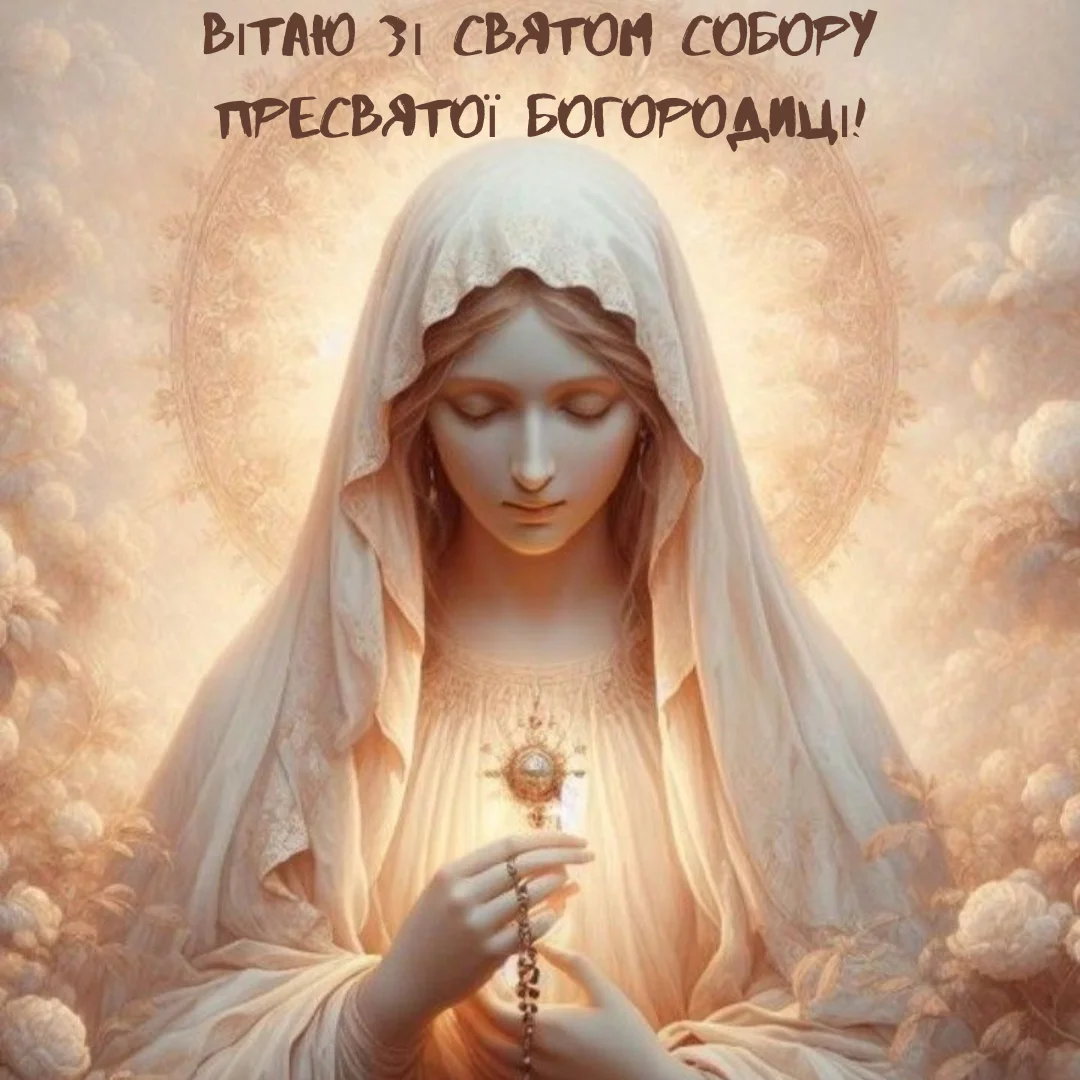 Вітаю зі святом Собору Пресвятої Богородиці! Нехай Божа Матір береже вашу родину від усіх негараздів, а святий Йосип дарує заступництво та спокій вашій оселі.