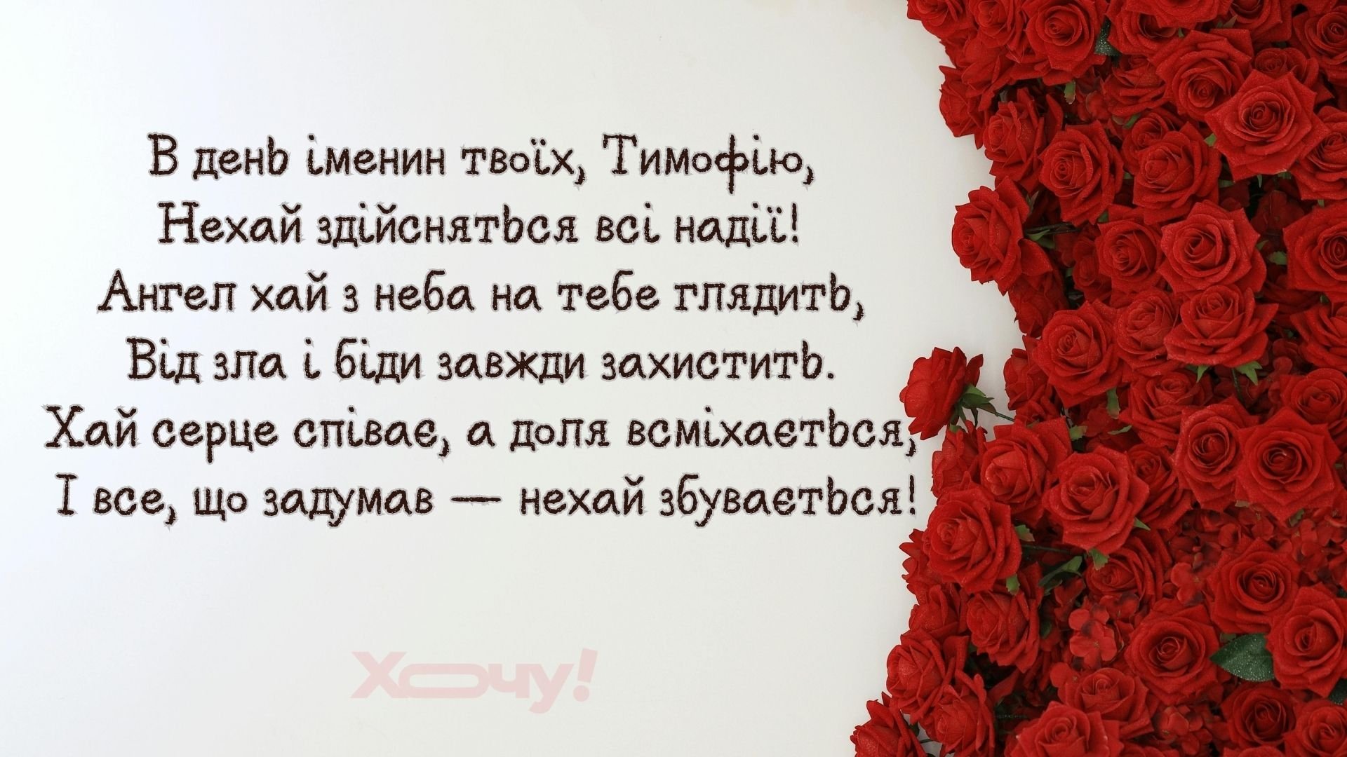Благ тобі, Тимофію, земних і багато щастя. Хай береже Всевишній від негоди! У День ангела — здоров’я аж на століття. Нехай відступить темрява і буде світло!