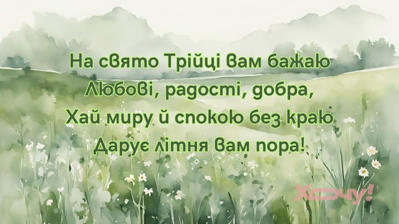 Хочу! вітає усіх з Зеленими святами та підготувала для вас чудові слова привітань та гарні картинки і листівки. У Зелену неділю, у Трійцю бажаємо вам гармонії, радості і тепла! Хай свято прийде у ваш дім і приведе з собою щастя та добробут! Нехай всі мрії збуваються, а у душах панує спокій.